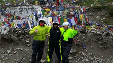 Doordat we inmiddels zijn gewend aan onverharde wegen hebben we tijdens de beklimming volop tijd om te genieten van de prachtige vergezichten en laten we de Enfield rustig zijn klimwerk doen. Boven op de top realiseer ik me dat we bijna 200 meter hoger staan dan het Basecamp van de hoogste berg van de wereld: de Mount Everest. Geen zuurstofflessen of pikhouwelen voor ons, maar wel black tea en een prachtige Royal Enfield die staat te glimmen in de zon. Een waarschuwingsbord dat we niet langer dan 25 minuten op de top mogen blijven vanwege hoogteziekte, brengt me weer terug op de wereld. Gelukkig heb ik geen last van hoogteziekte, maar de diagnose hoogte-euforie of hoogte-geluk is hier zeker op zijn plaats.